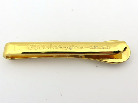 Gucci Vintage Gold Silver Tone Metal GG Oval Cufflinks Tie Clip Set
