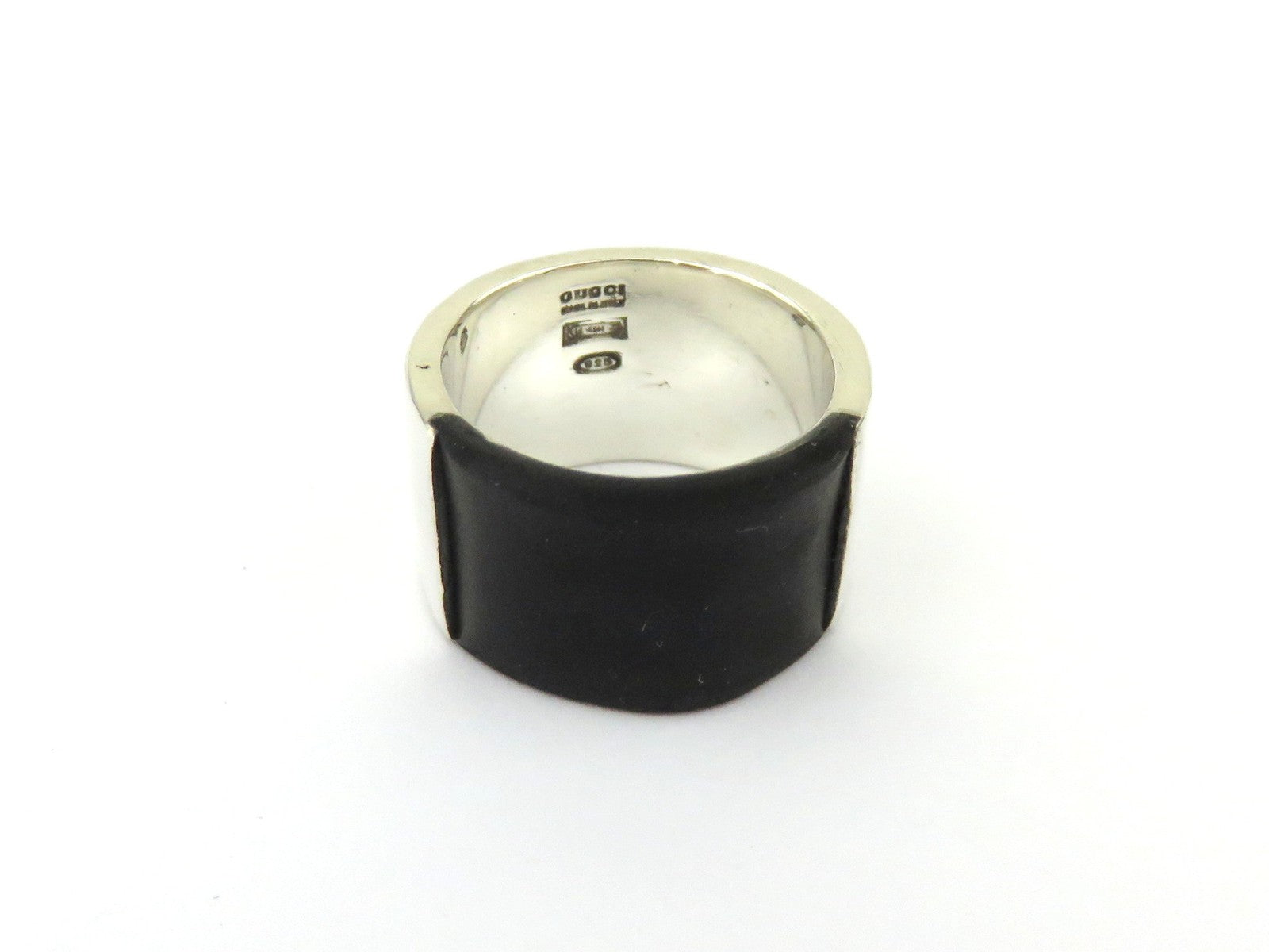 GUCCI Sterling Silver Black Rubber Wide Band Ring 8.75 Price Includes US Tariff