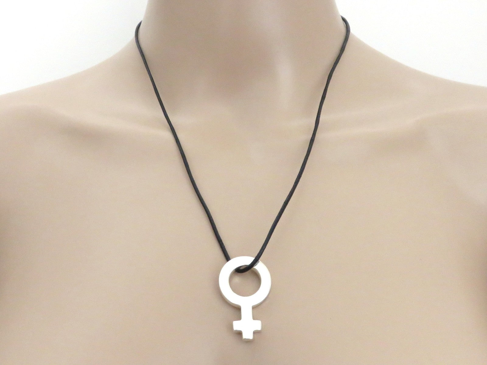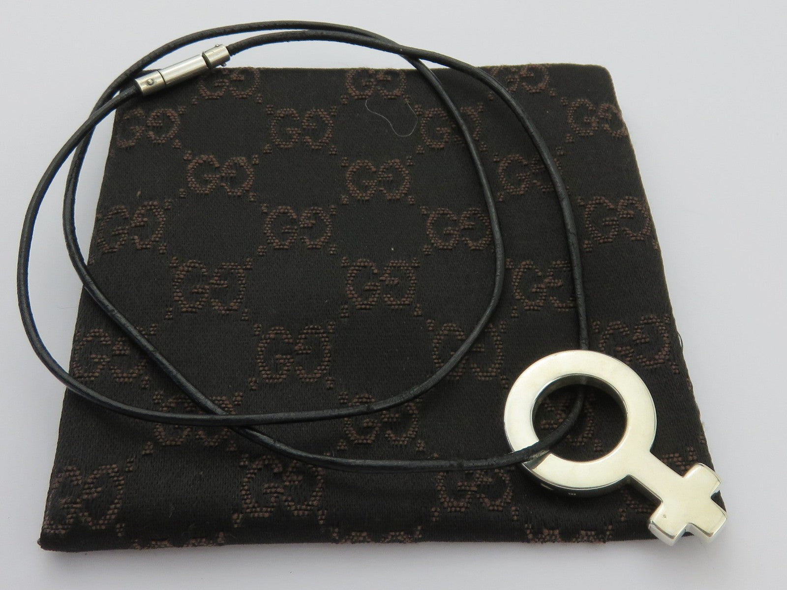 Gucci Sterling Silver Female Symbol Pendant Black Leather Cord Necklace
