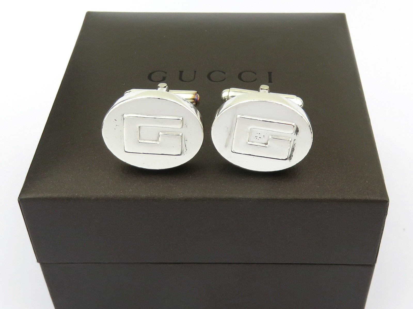 Gucci Sterling Silver G Logo Oval Cufflinks Price Includes US Tariff