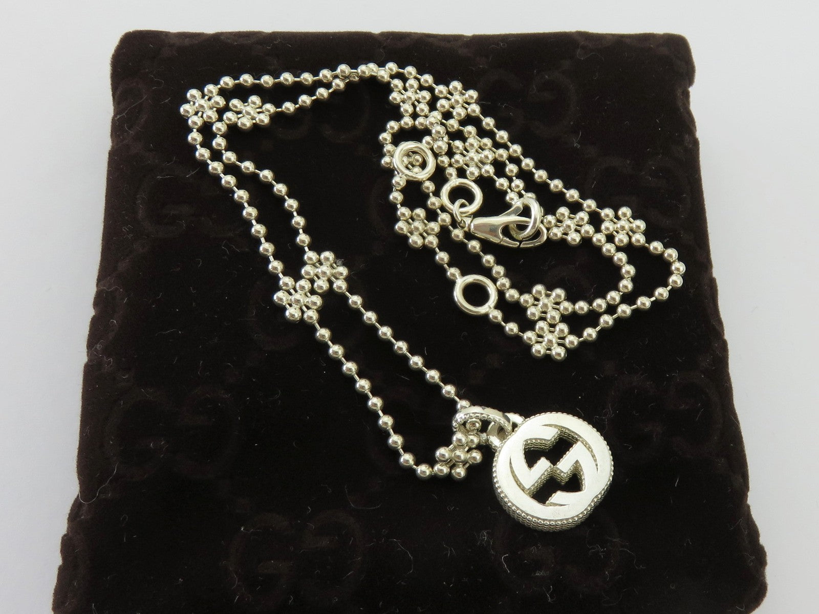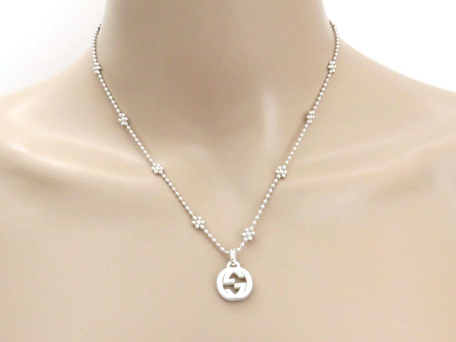 Gucci Sterling Silver Interlocking G Logo Pendant Flower Necklace