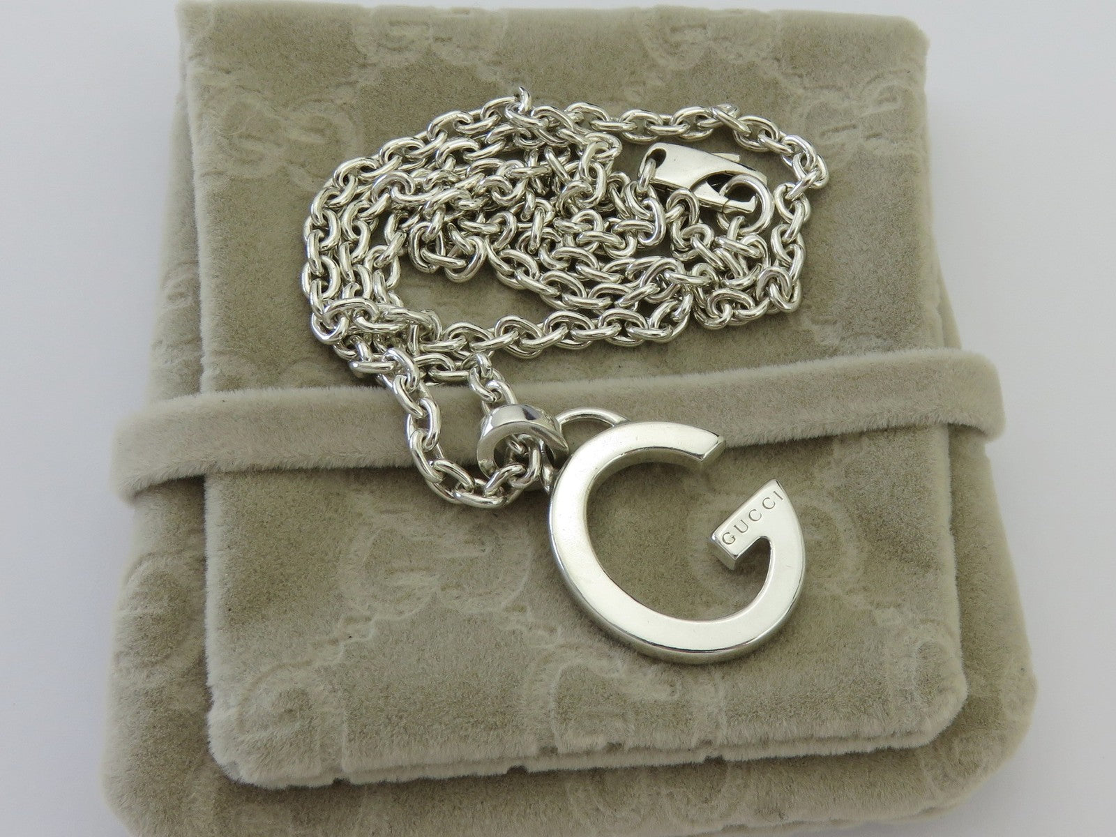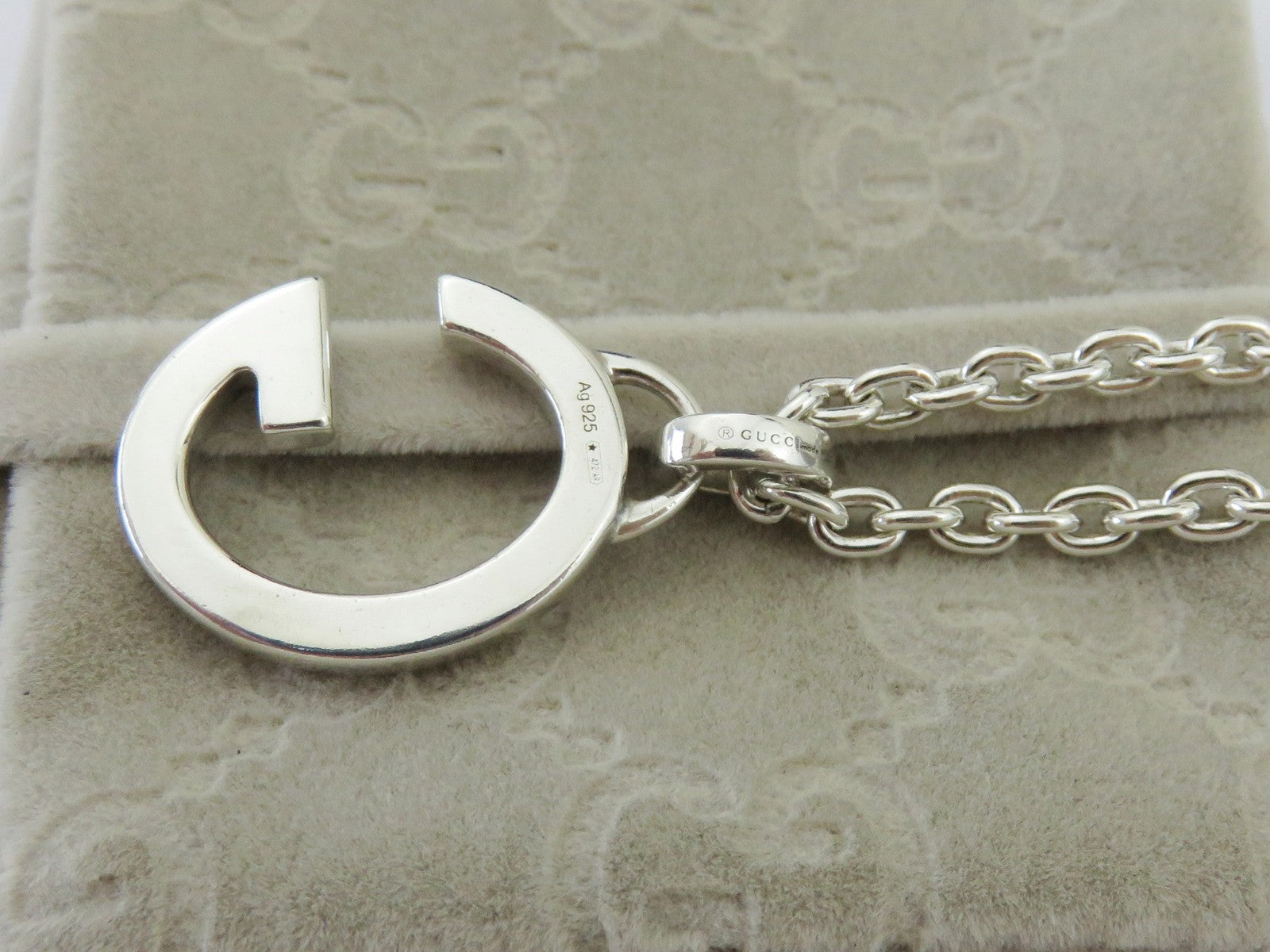 Gucci Sterling Silver Oval G Logo Chain Link Pendant Price Includes US Tariff
