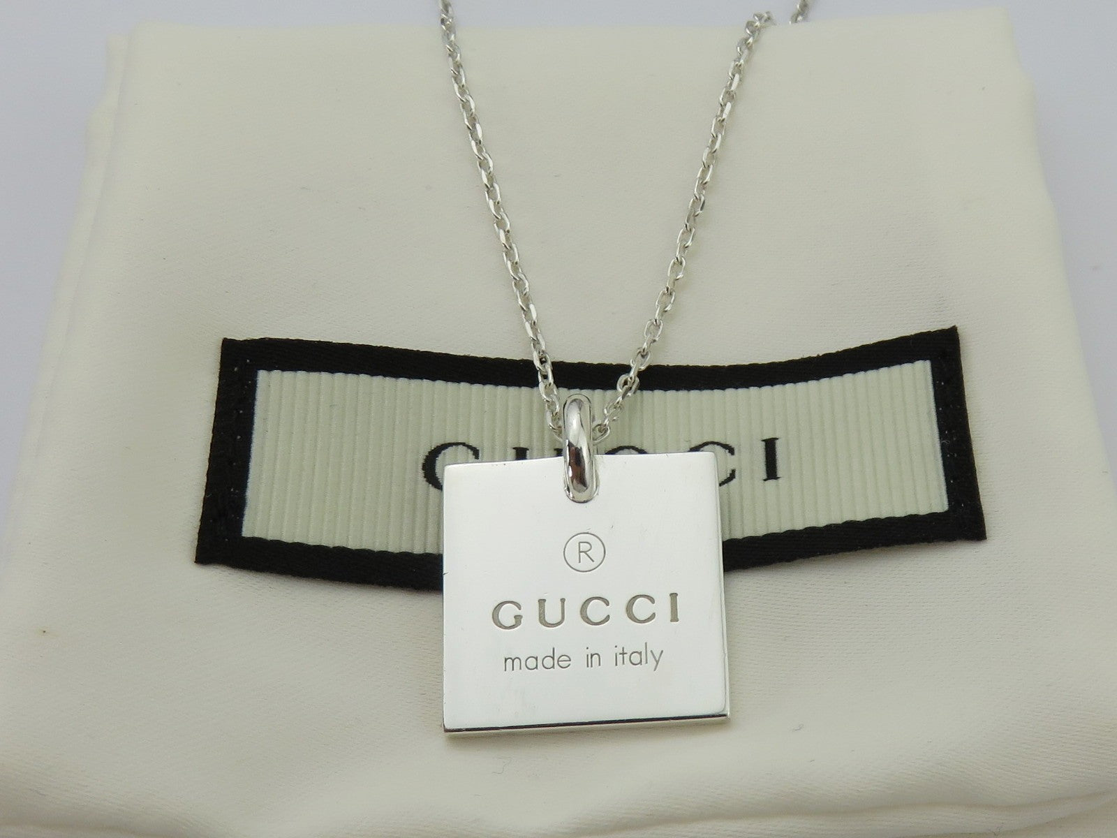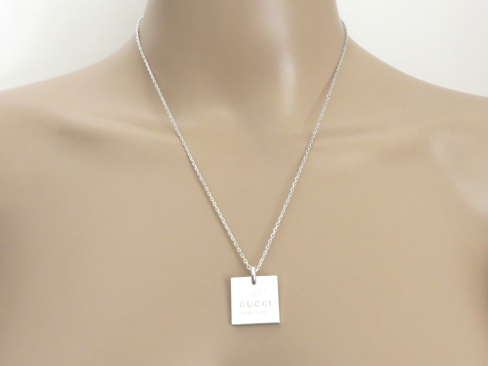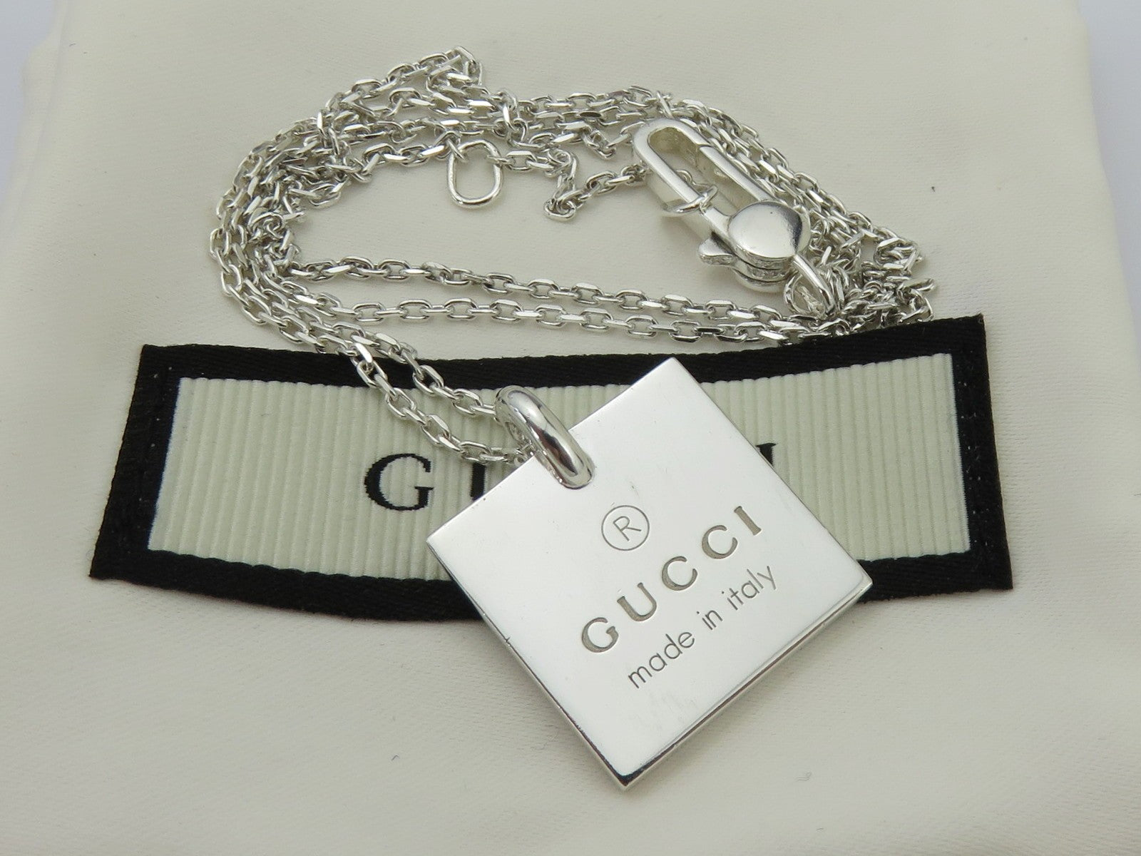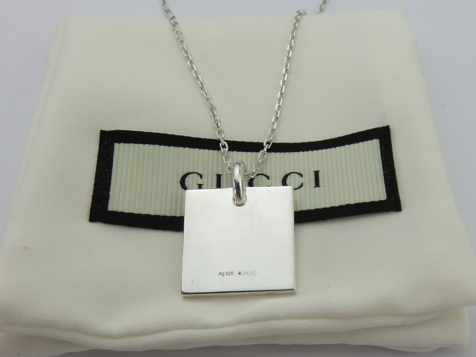 Gucci Sterling Silver Square Tag Pendant Necklace Price Includes US Tariff