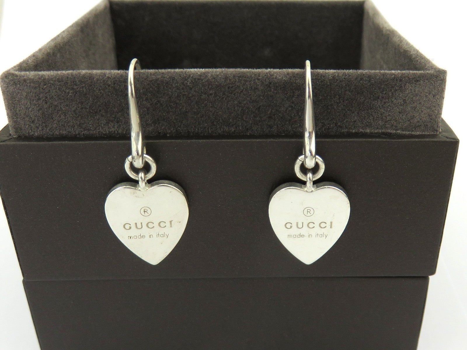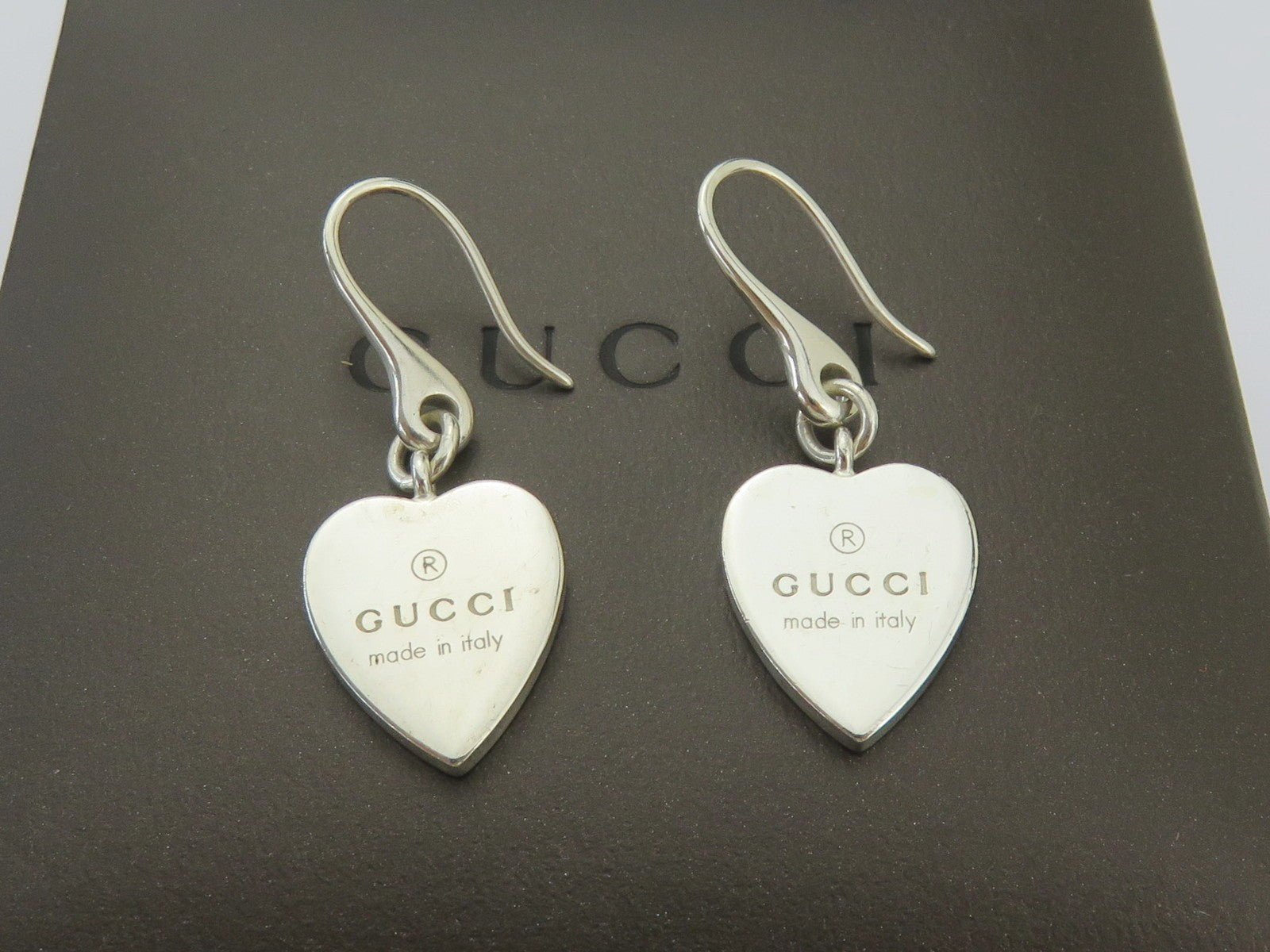 Gucci Sterling Silver Trademark Heart Dangle Earrings