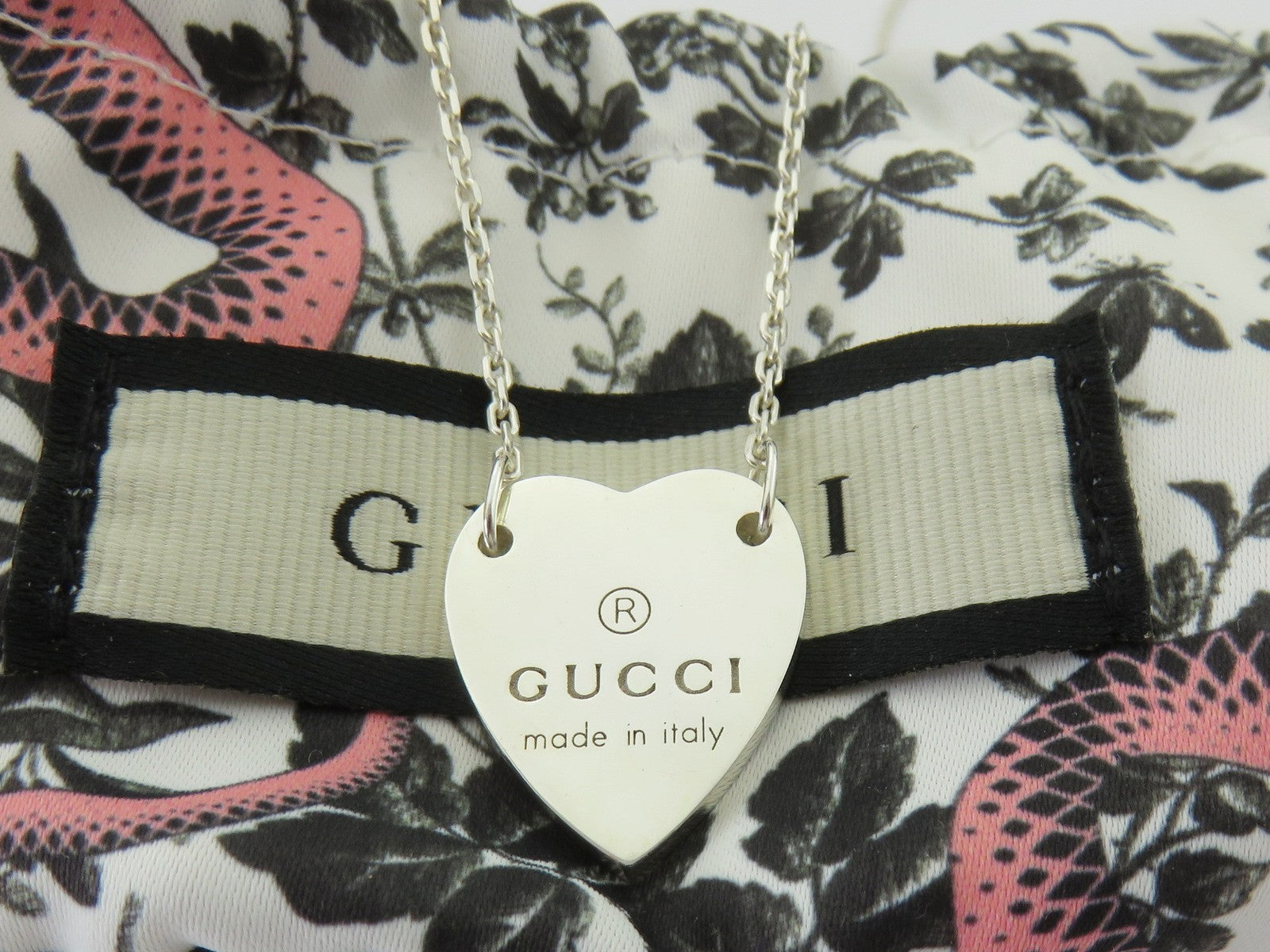 Gucci Sterling Silver Trademark Heart Pendant Necklace