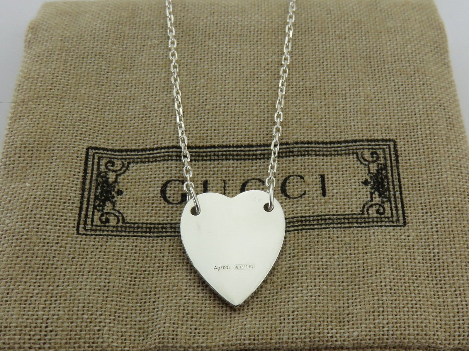 Gucci Sterling Silver Trademark Heart Pendant Necklace Price Includes US Tariff
