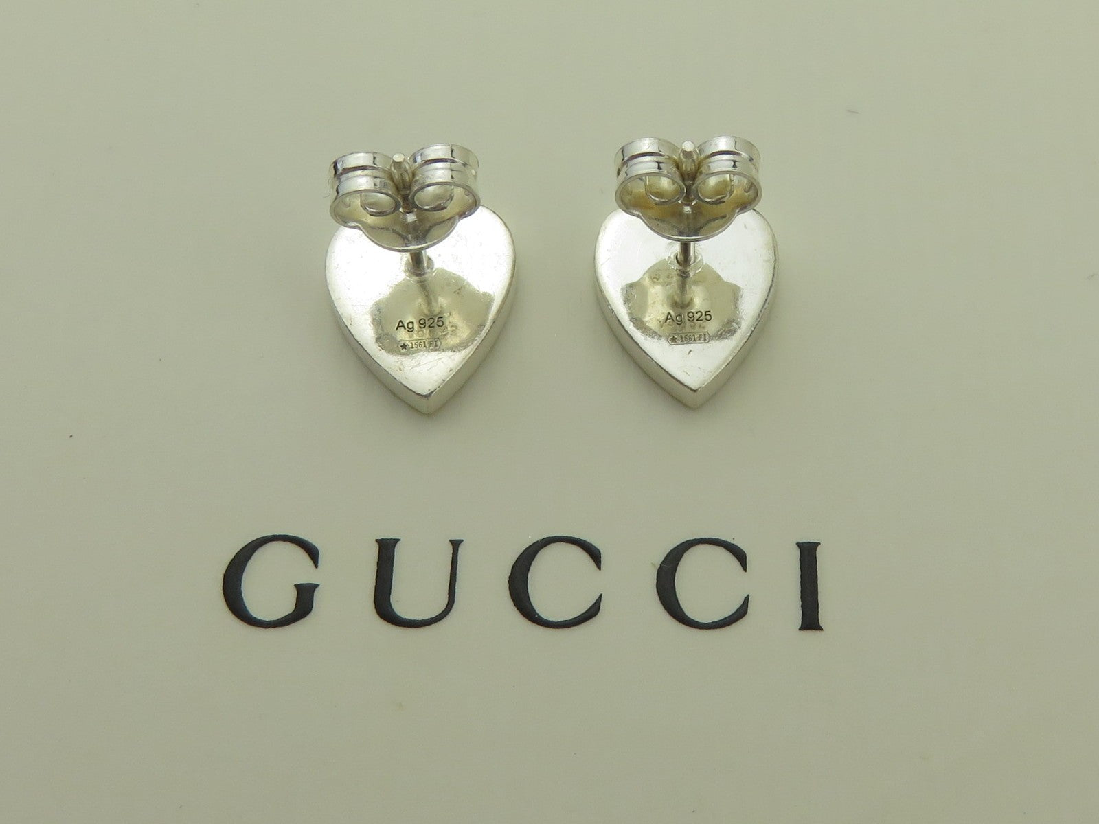 GUCCI Sterling Silver Trademark Heart Tag Earrings Price Includes US Tariff